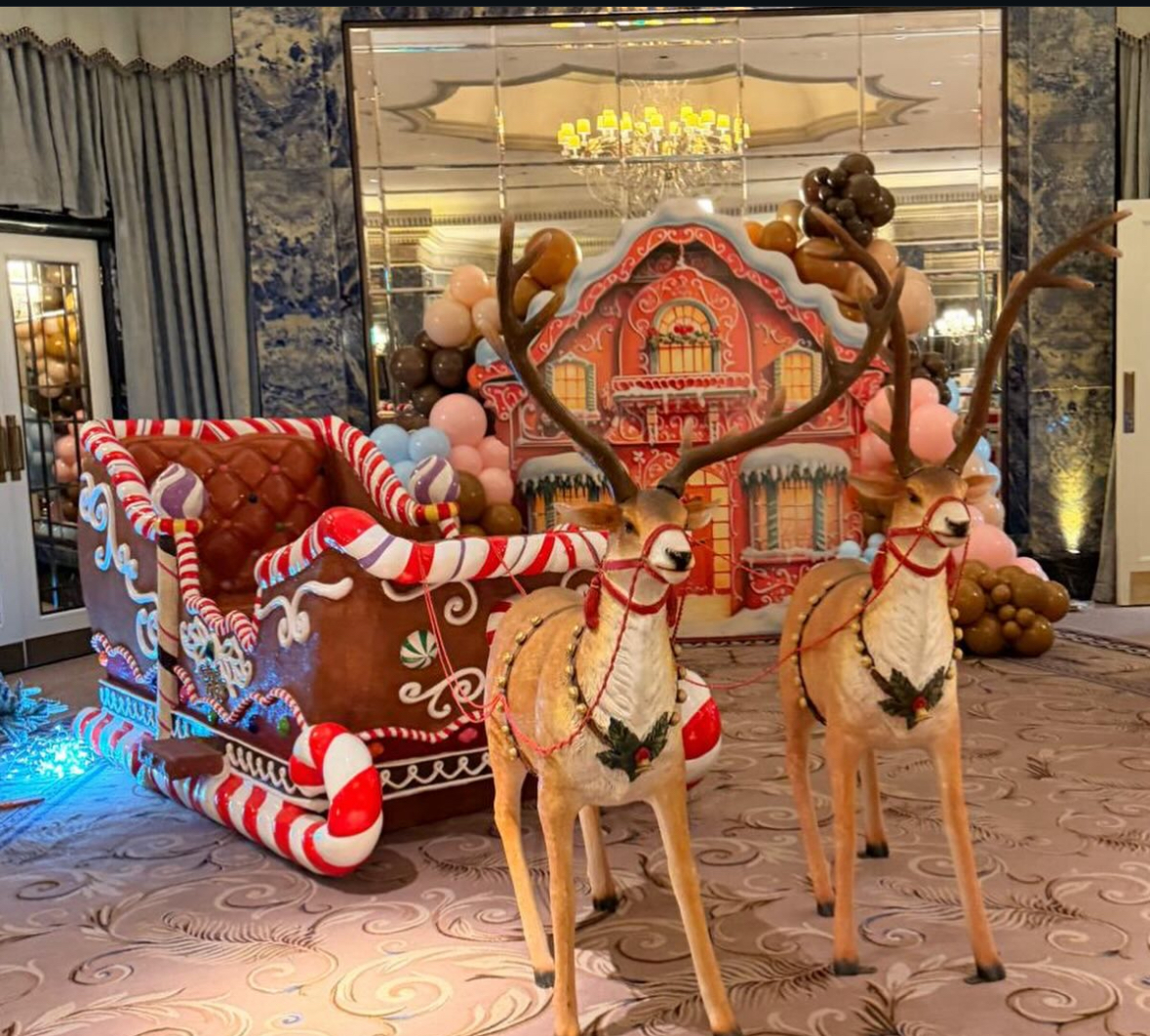 Bring a touch of festive wonder to your event with our life-size Gingerbread Sleigh! Beautifully crafted to resemble real gingerbread, complete with delightful candy accents, this 4-seater prop is perfect for enchanting displays and memorable photo opportunities.